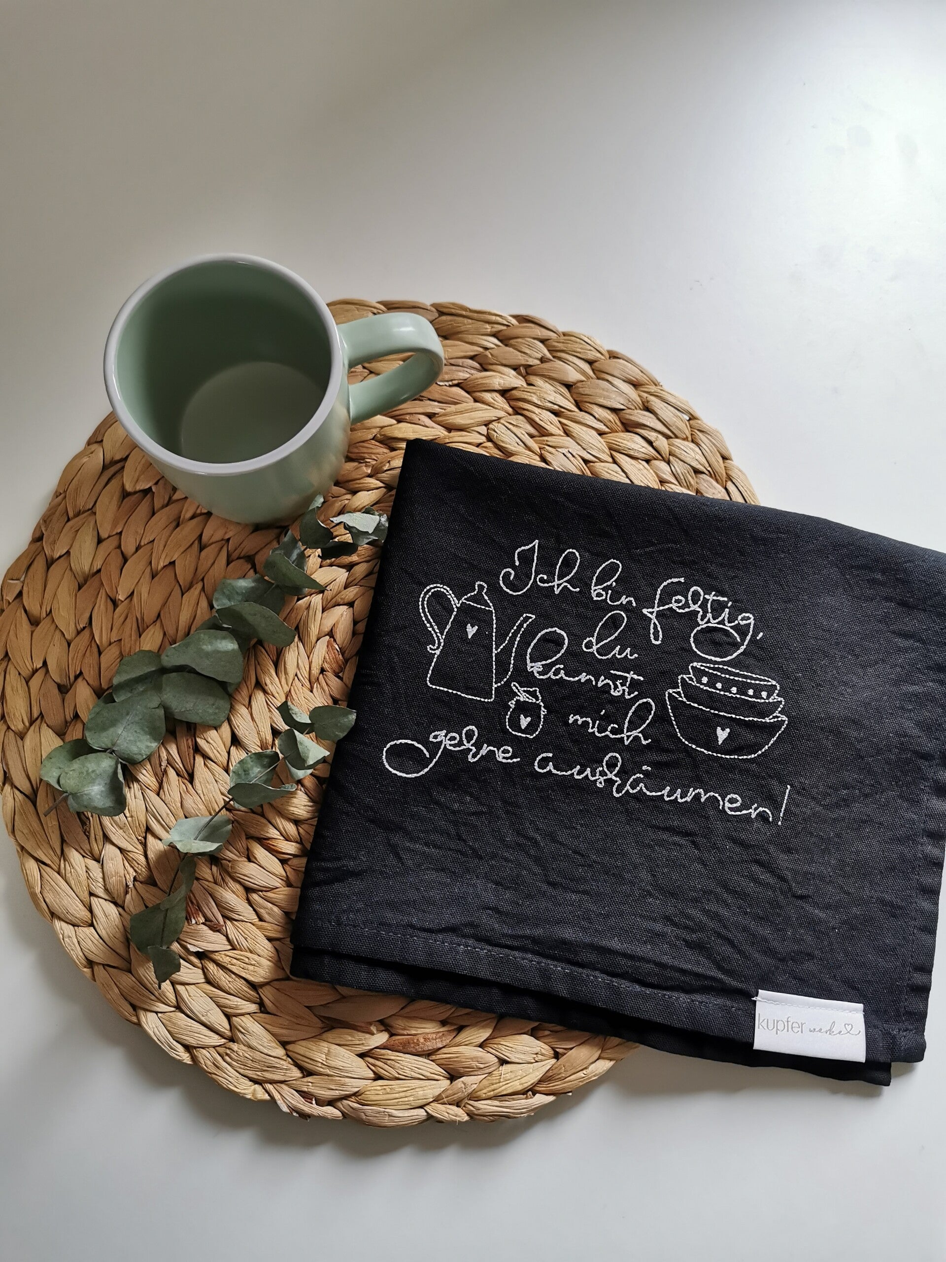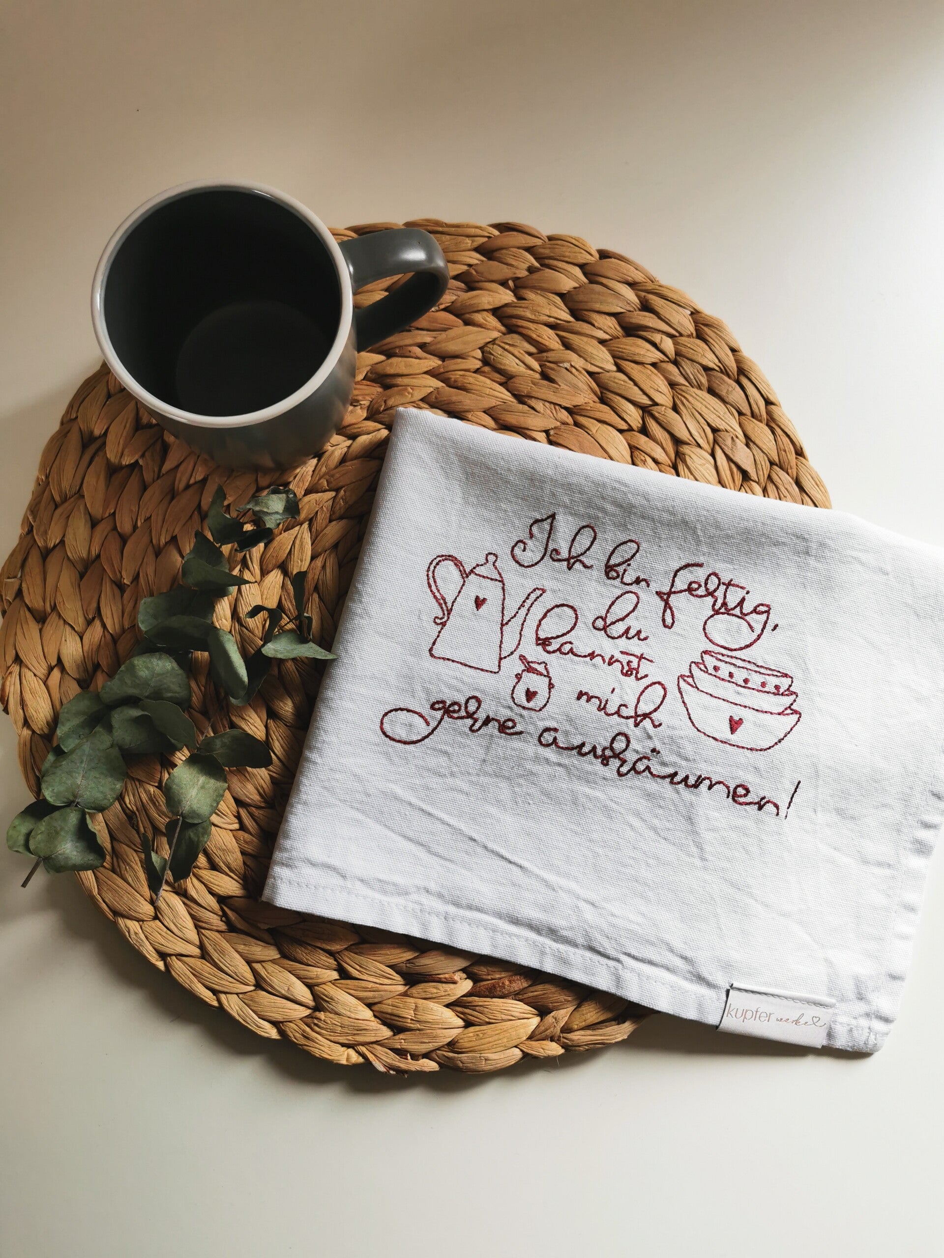 Geschirrtuch mit Spruch-Motiv