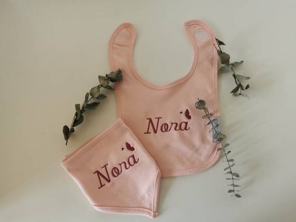 Geschenkset bestehend aus einem Babyhalstuch und einem Babylätzchen