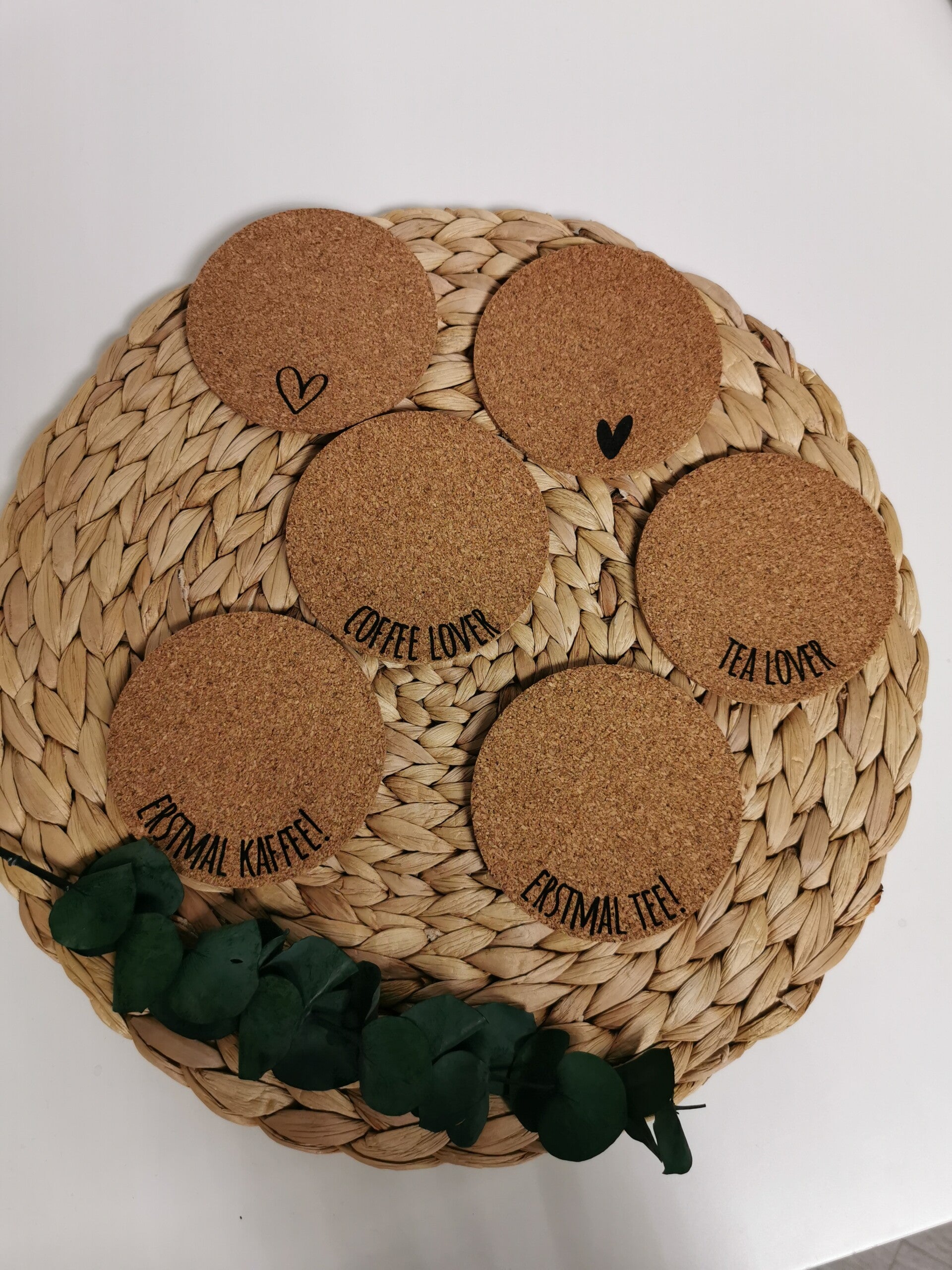 Getränkentersetzer-Set aus Kork "Kaffee und Tee"