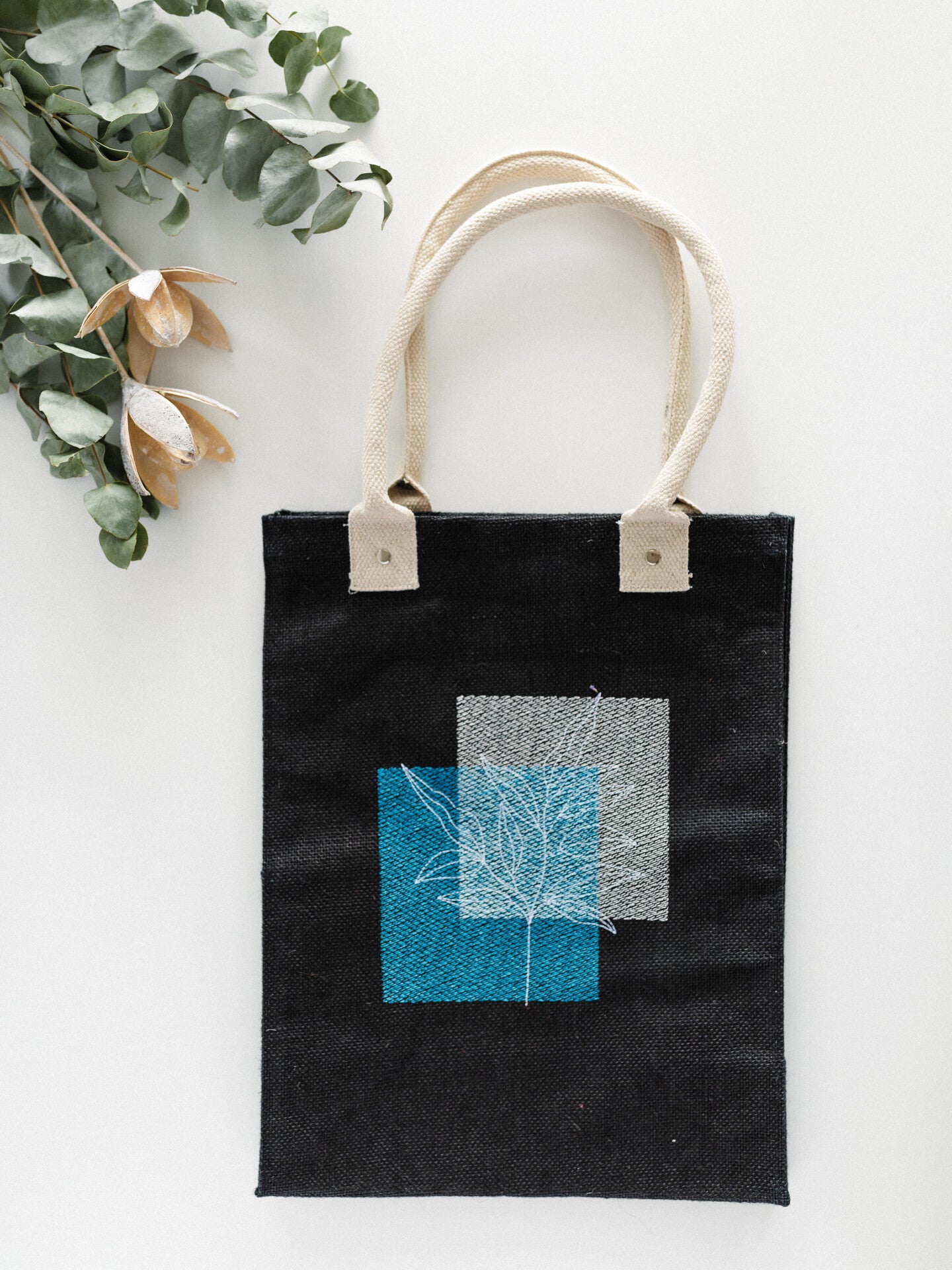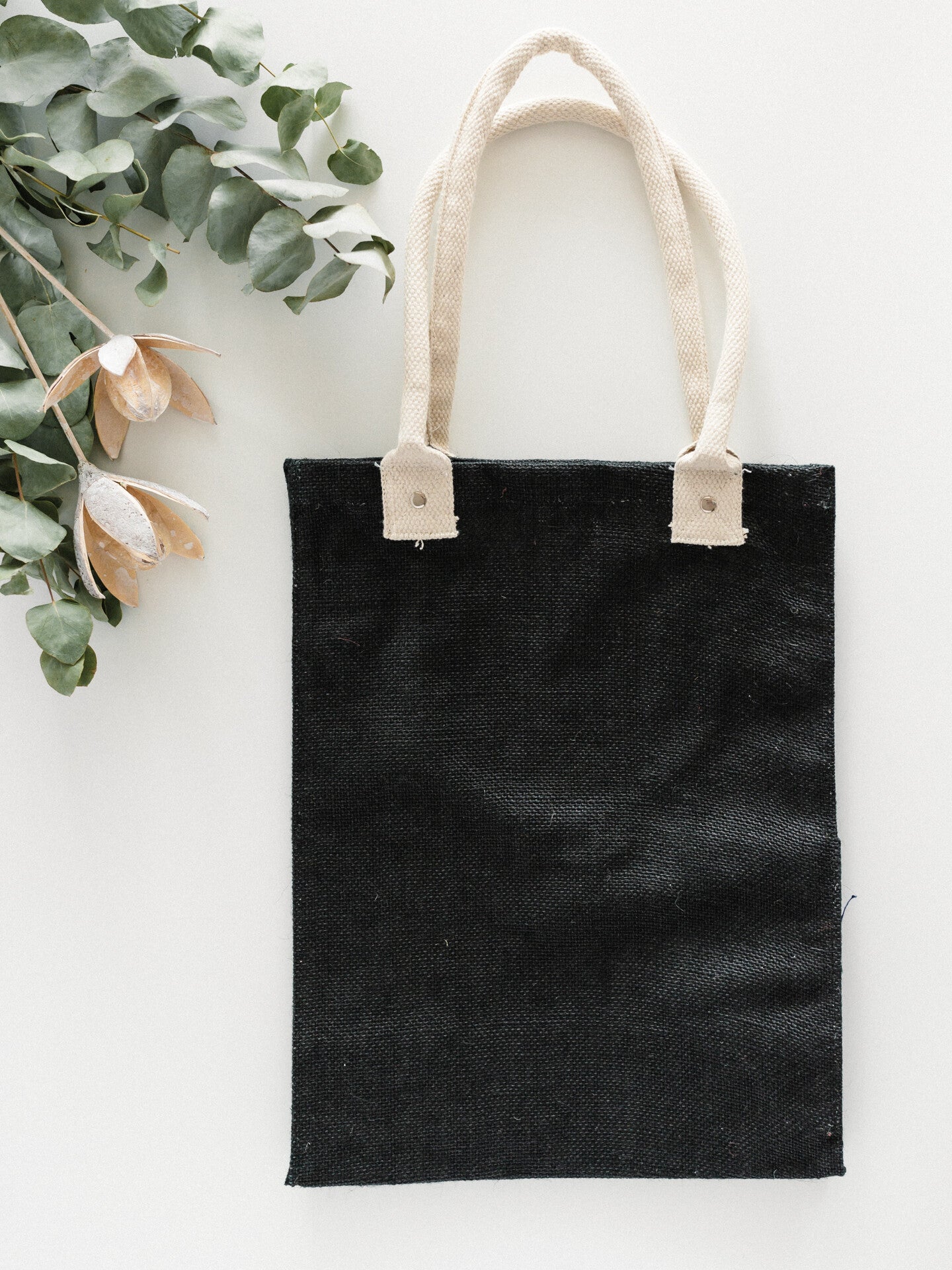 Farbige Jute-Tasche mit abgesetzen hellen Henkeln